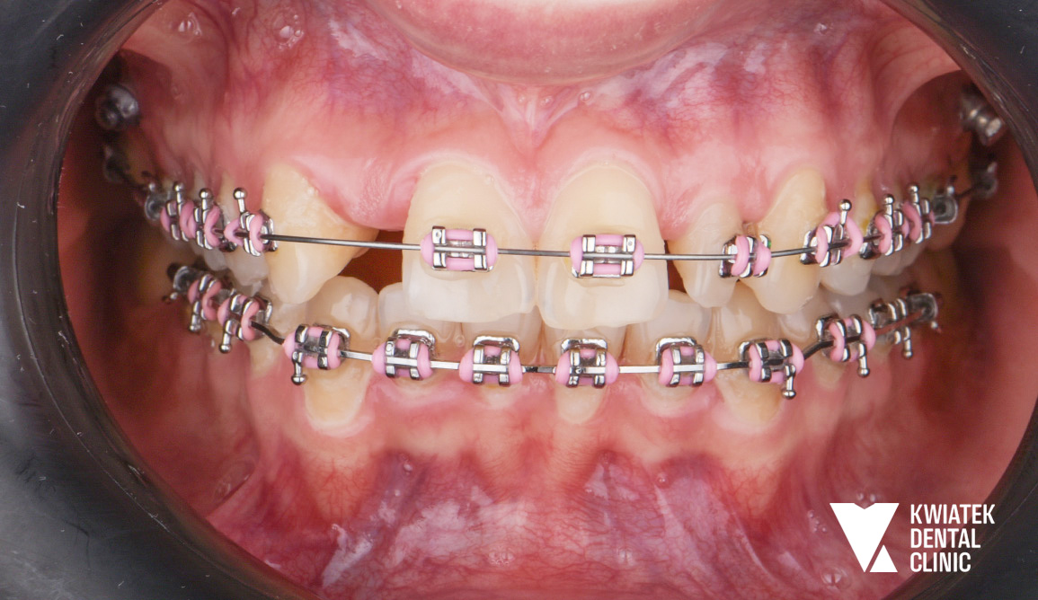 Leczenie obejmowało przygotowanie chirurgiczne, zastosowanie systemu Beneslider z miniimplantami ortodontycznymi oraz leczenie aparatem stałym. Dzięki wieloetapowej terapii uzyskano prawidłowe ustawienie zębów, harmonijny zgryz oraz spektakularną poprawę estetyki uśmiechu.