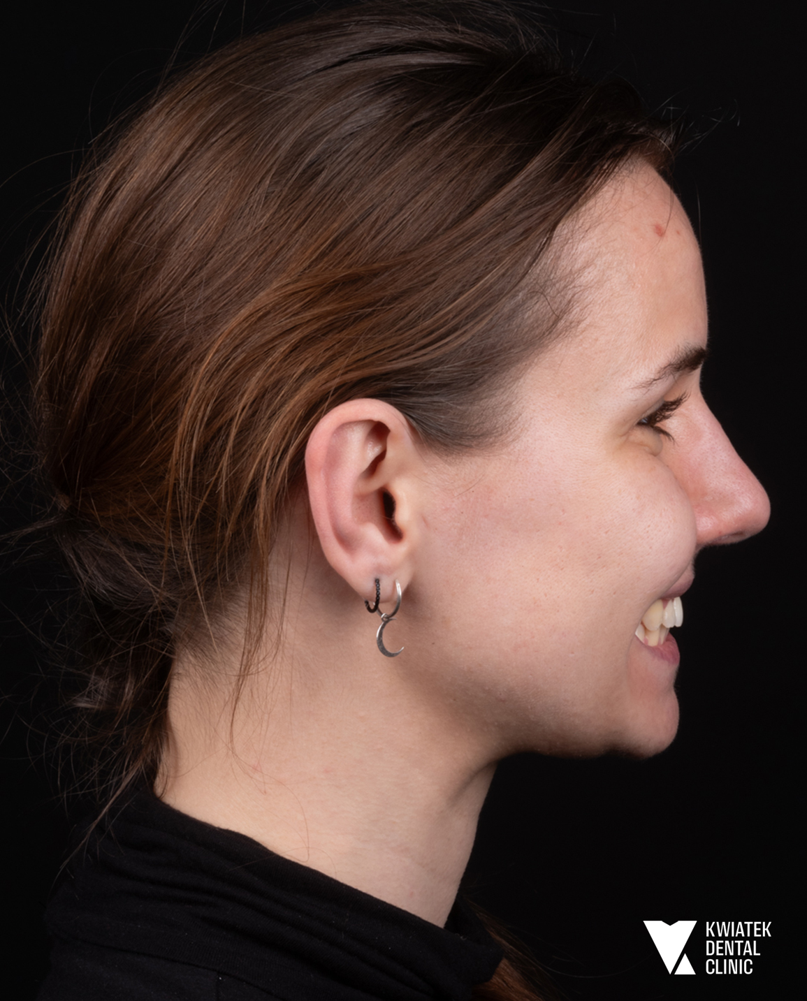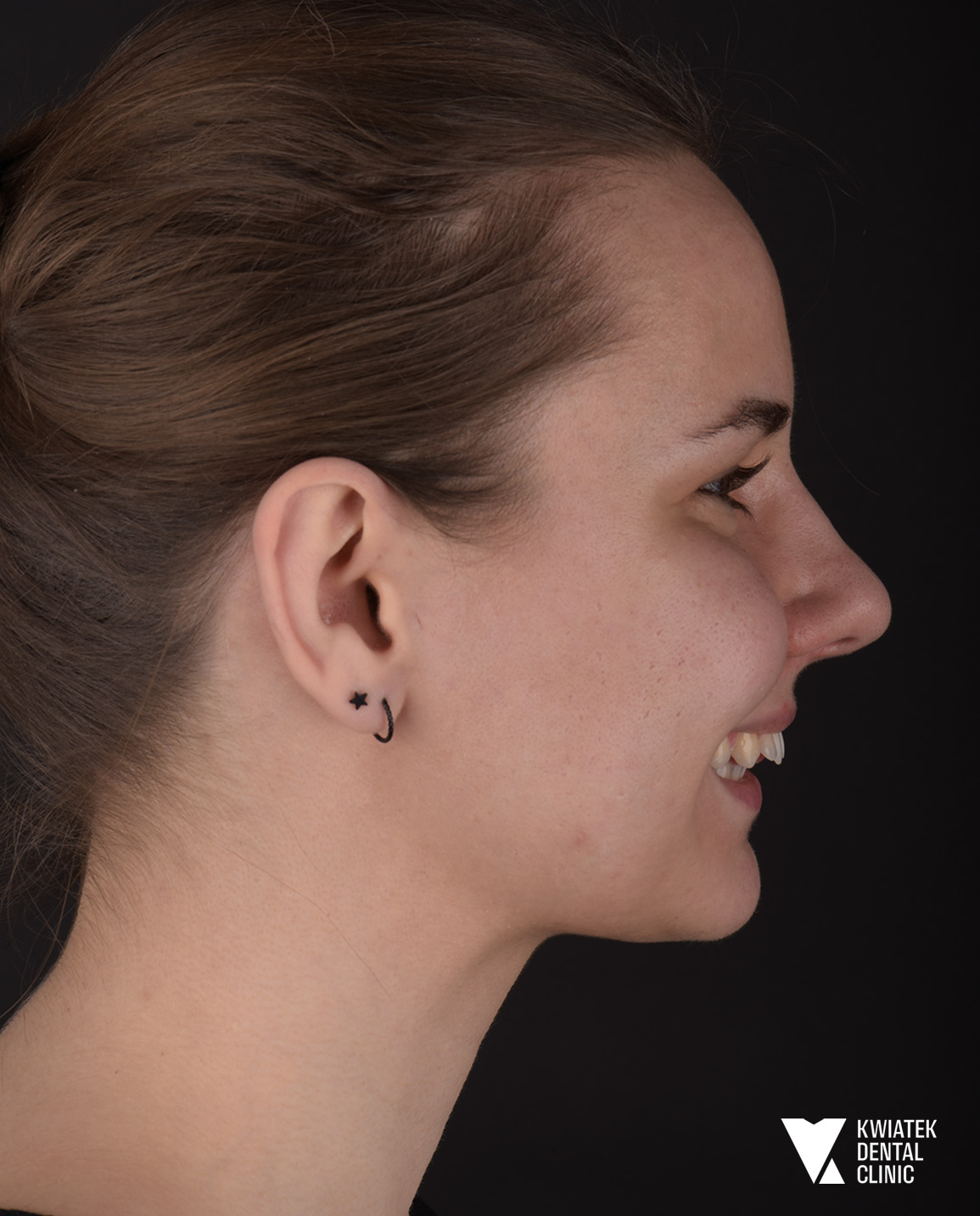 Pani Anastazja zgłosiła się do naszej kliniki z zaawansowaną wadą szkieletową, obejmującą tyłożuchwie, zgryz otwarty oraz znaczne stłoczenia zębów, pomimo wcześniejszego leczenia ortodontycznego. Przeprowadzono kompleksową terapię łączącą ortodoncję, leczenie czynnościowe oraz chirurgię ortognatyczną. Efektem jest nie tylko prawidłowy zgryz, ale także wyraźna poprawa estetyki twarzy i komfortu życia.