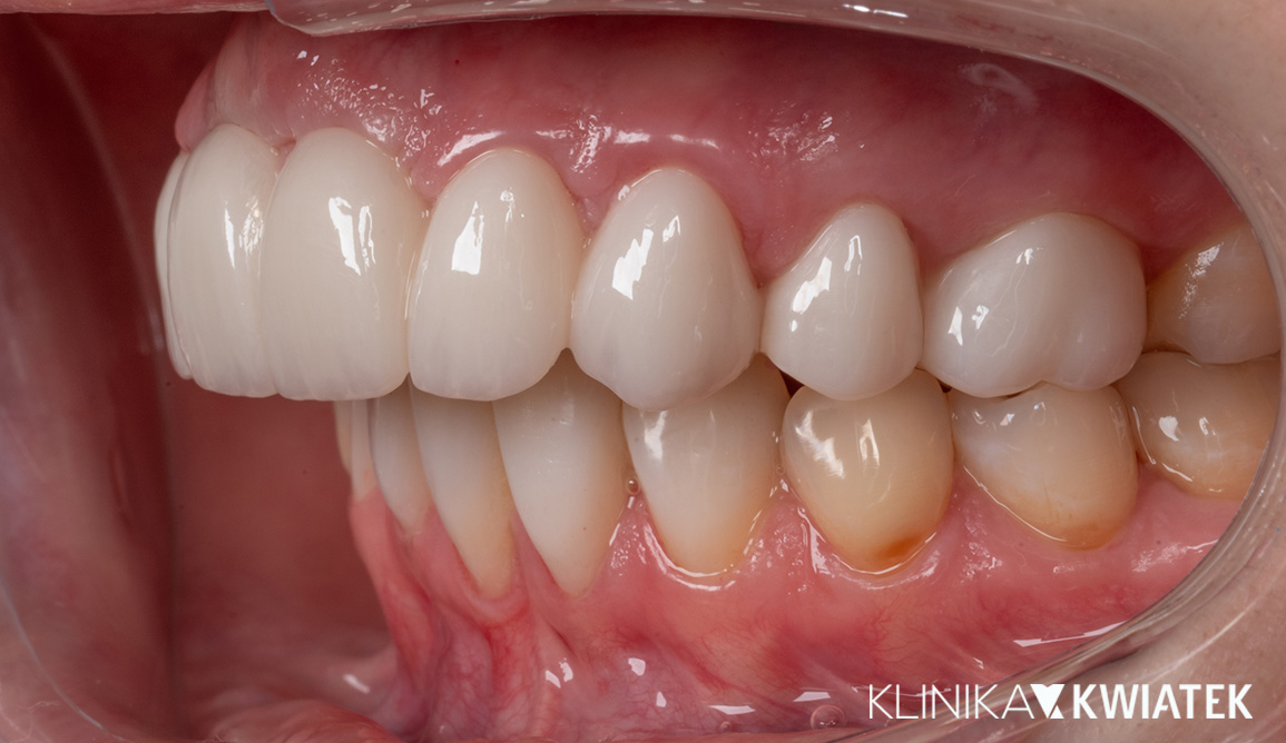 W trakcie leczenia korzystała także z fizjoterapii stomatologicznej, co pomogło zoptymalizować pracę stawów skroniowo-żuchwowych i mięśni żucia.