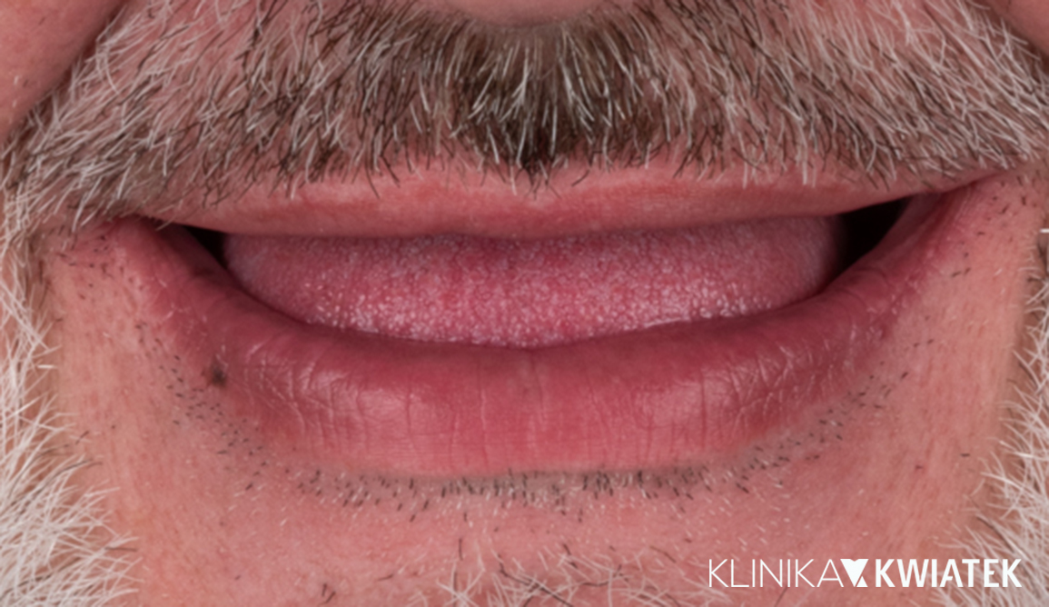 Pan Krzysztof marzył o uśmiechu, który da mu pewność siebie i komfort życia – bez protez, bez kompromisów. Zakwalifikowano go do pełnołukowej odbudowy uśmiechu na implantach (All-on-6 / All-on-4), z natychmiastowym efektem estetycznym już tego samego dnia. Całość leczenia, od pierwszej wizyty po osadzenie ostatecznej pracy protetycznej, udało się zrealizować w zaledwie 4 miesiące. Efekt? Naturalny, trwały i piękny uśmiech, który wymaga teraz tylko jednej rzeczy – systematycznej higieny i kontroli, by cieszył przez długie lata.