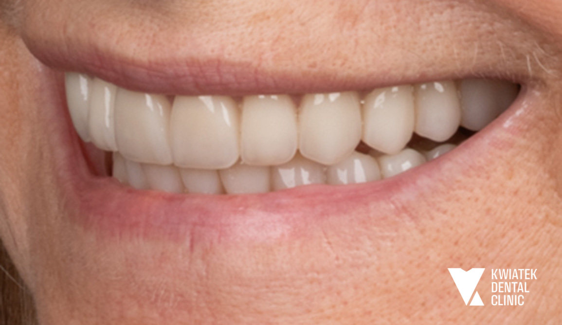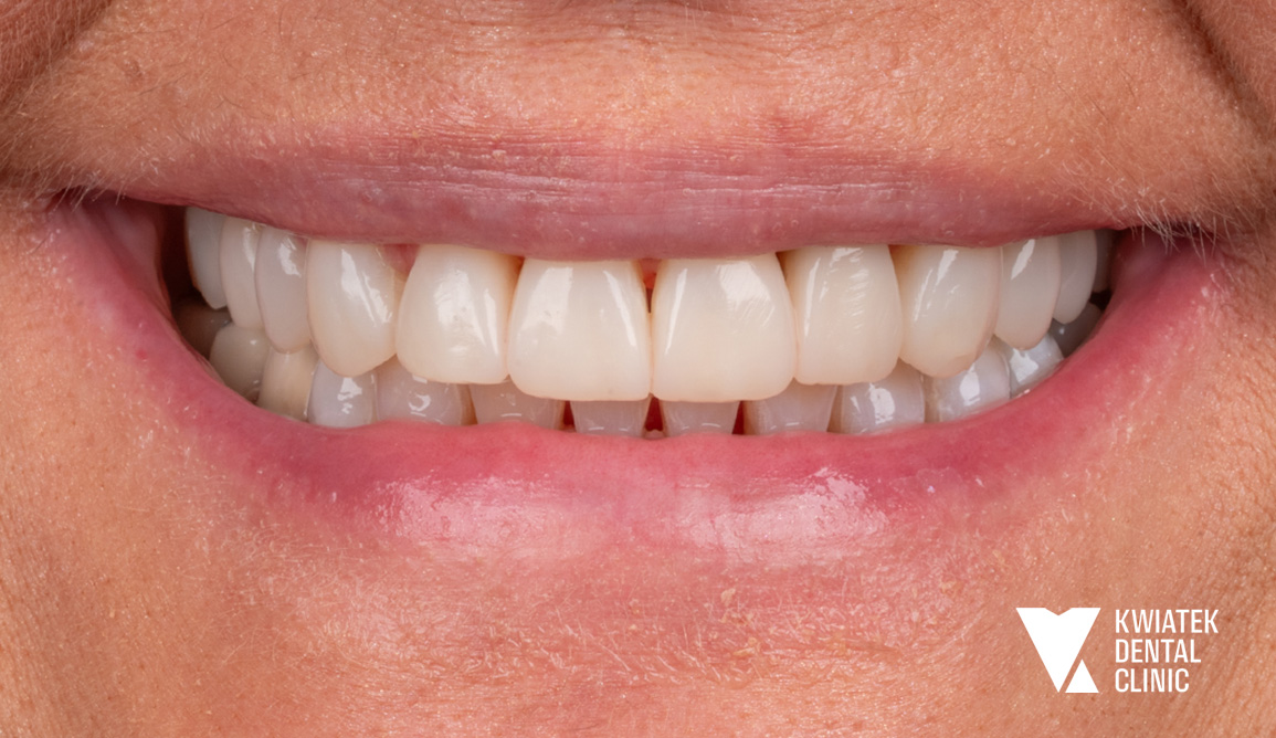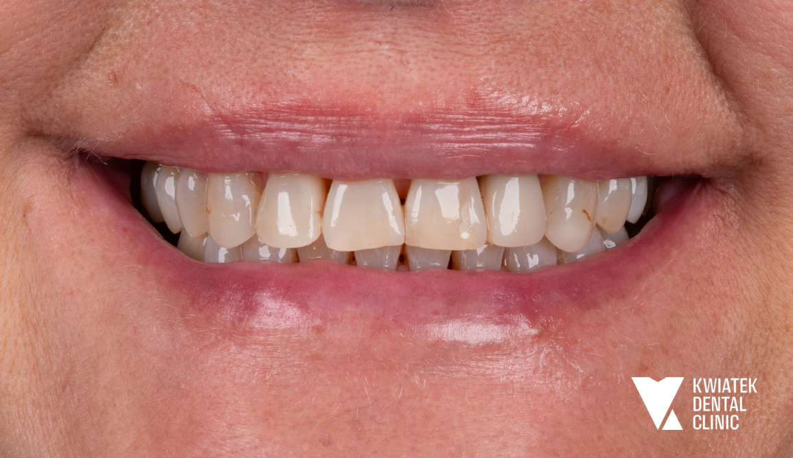 Efekt końcowy? Naturalna estetyka, piękny uśmiech i komfort, który daje Pacjentce pełną satysfakcję.